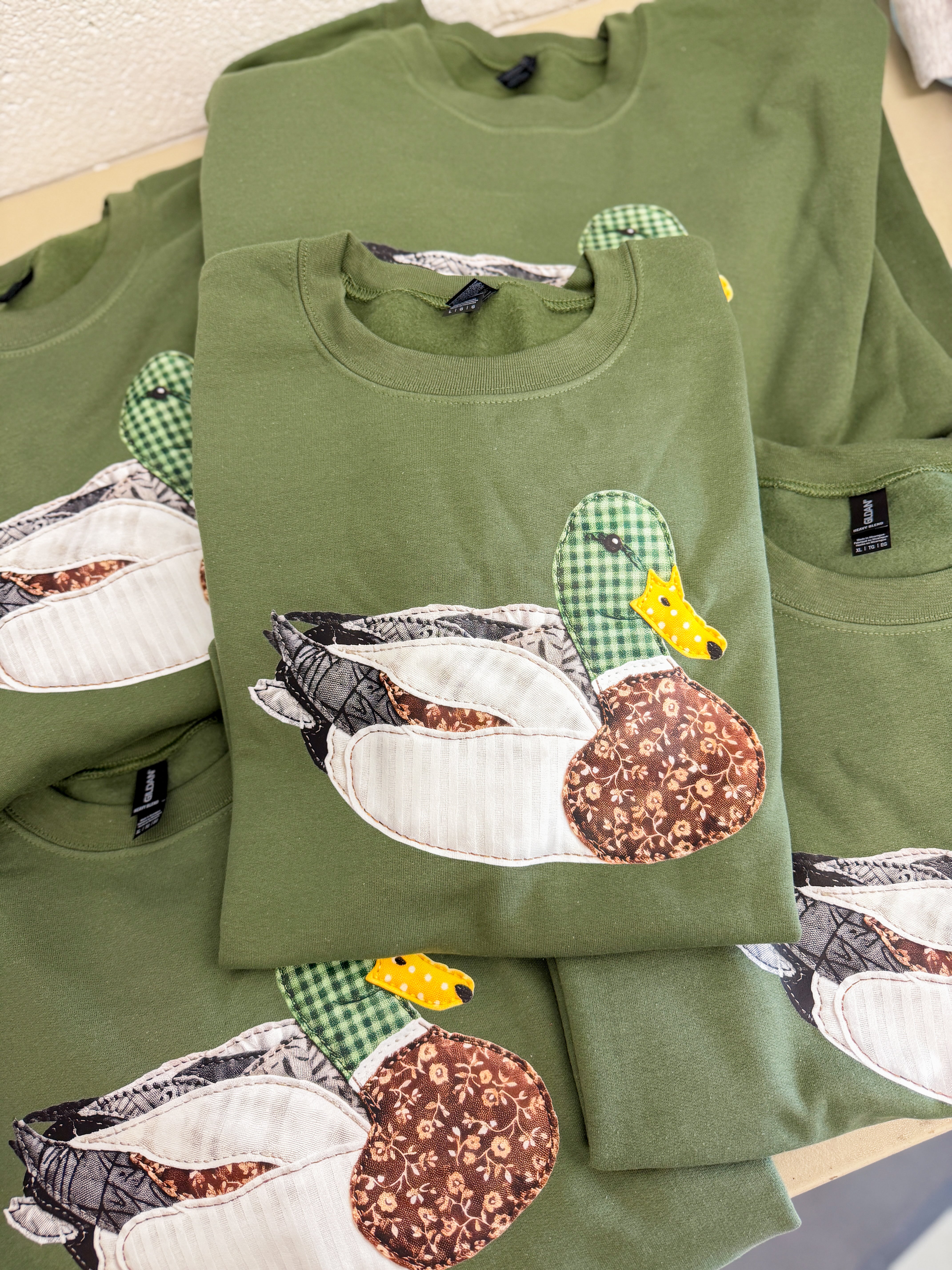 PREORDER: Faux Patchwork Mallard Duck Sweatshirt, Military Green