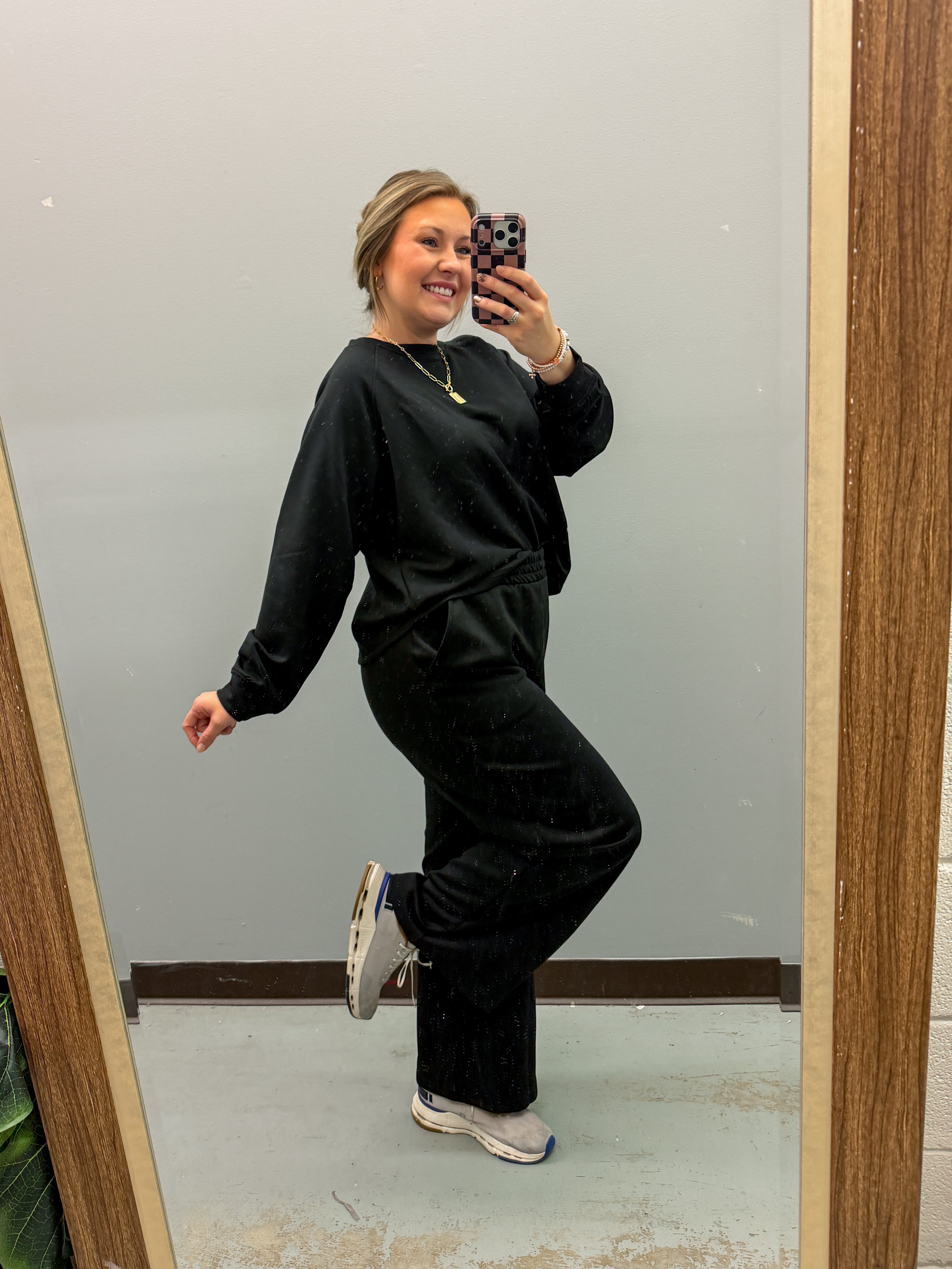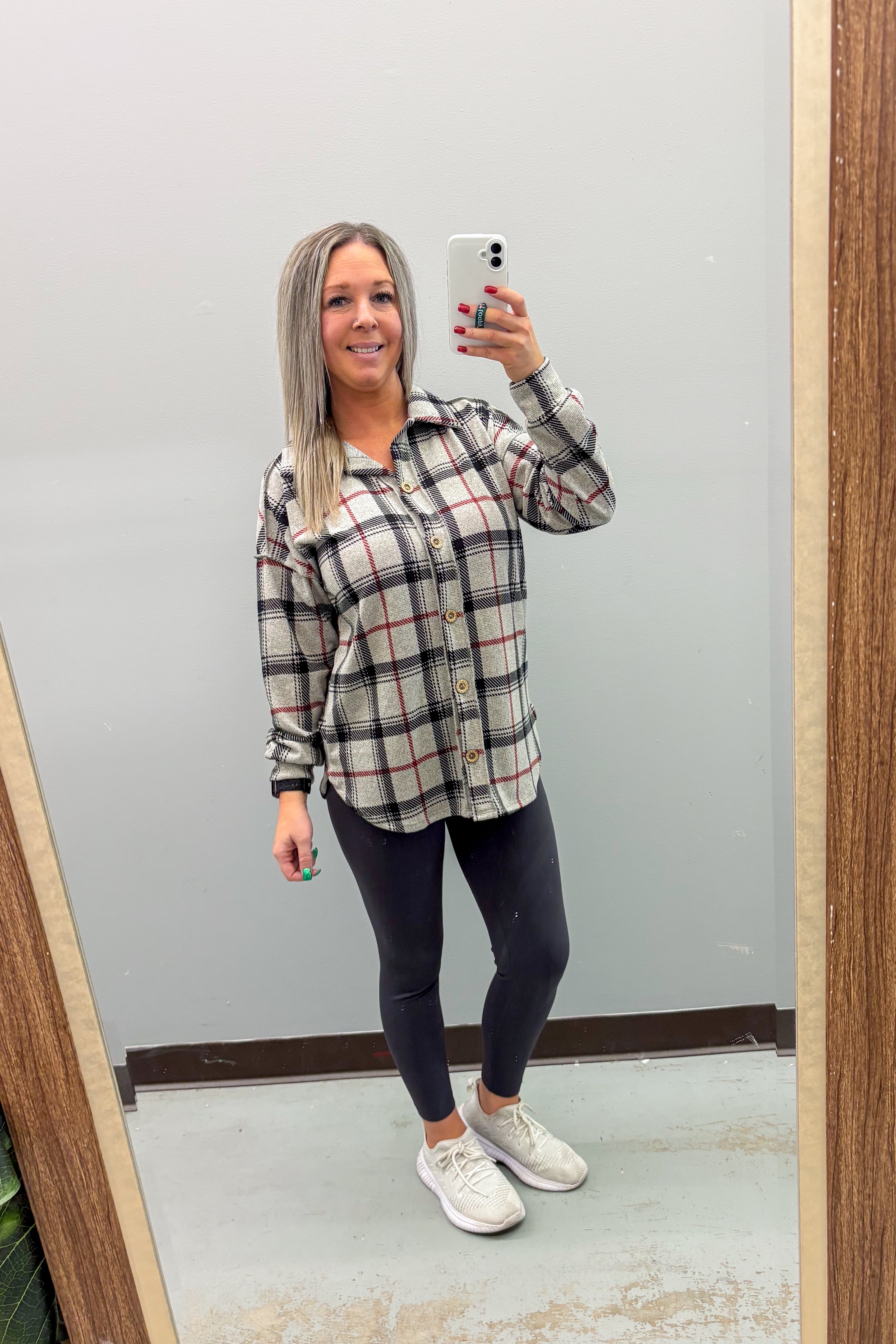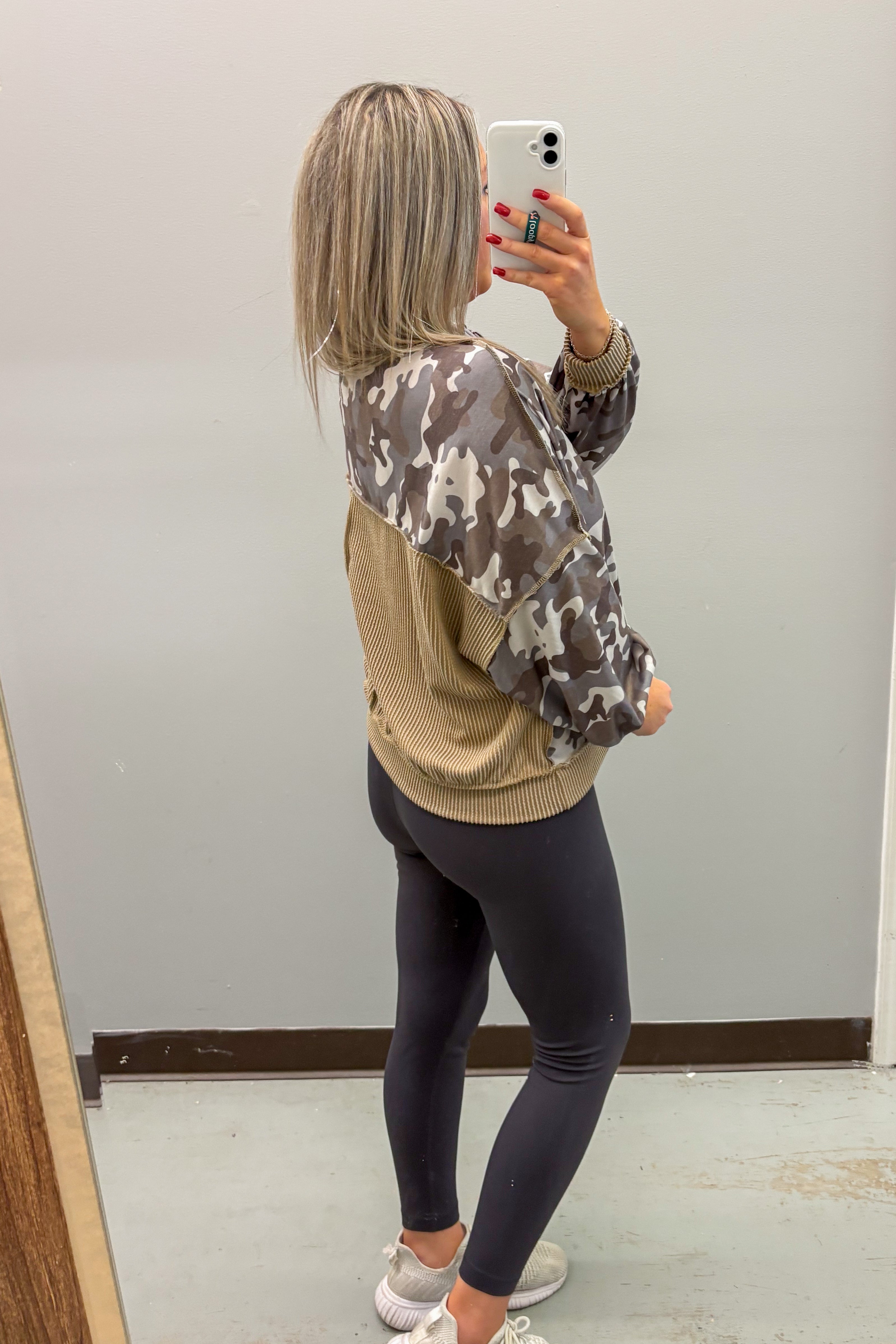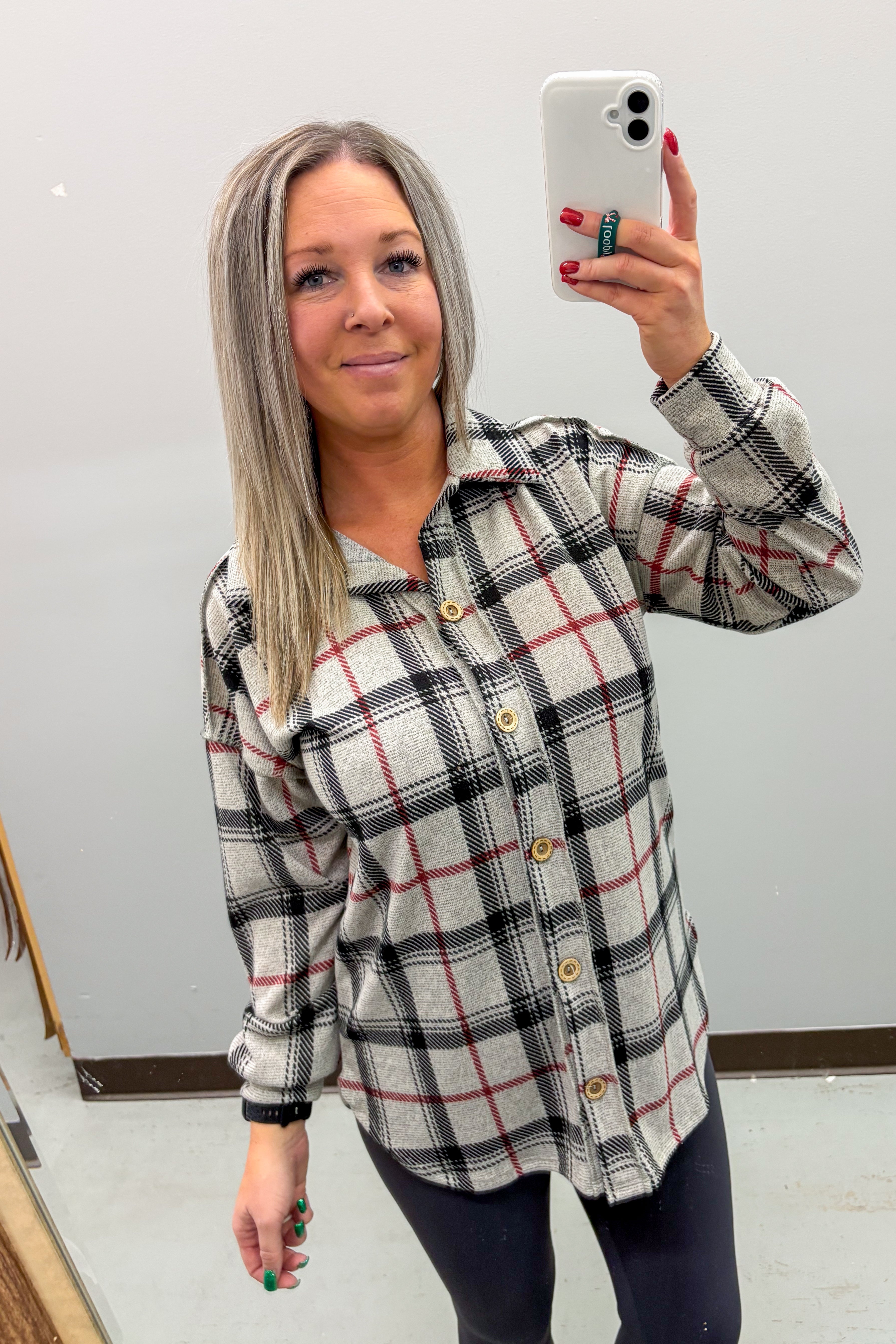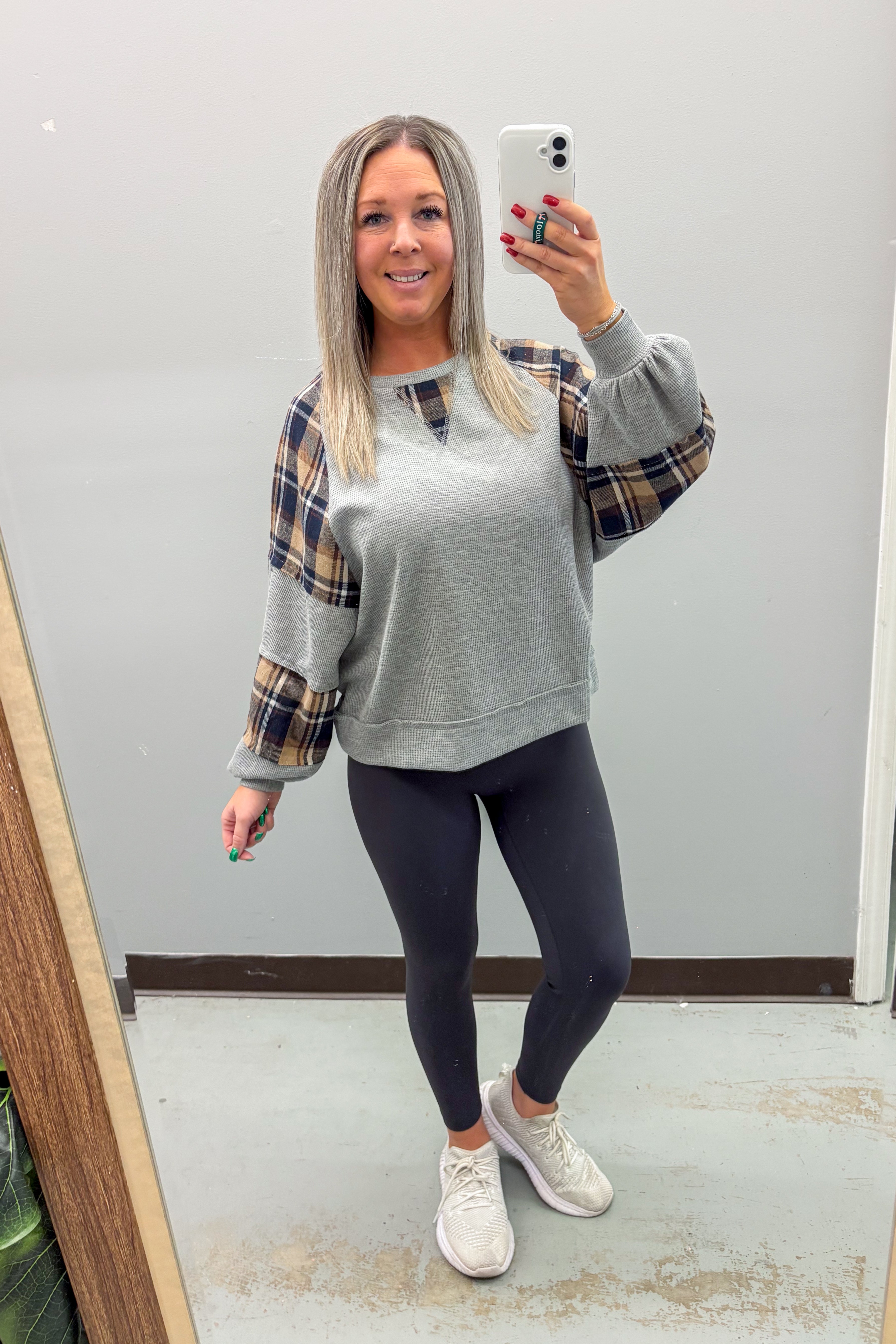 Olive Grove Checker Quarter Zip Pullover Top