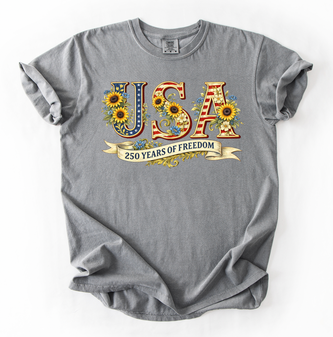PREORDER: USA Sunflowers Graphic Tee, Grey