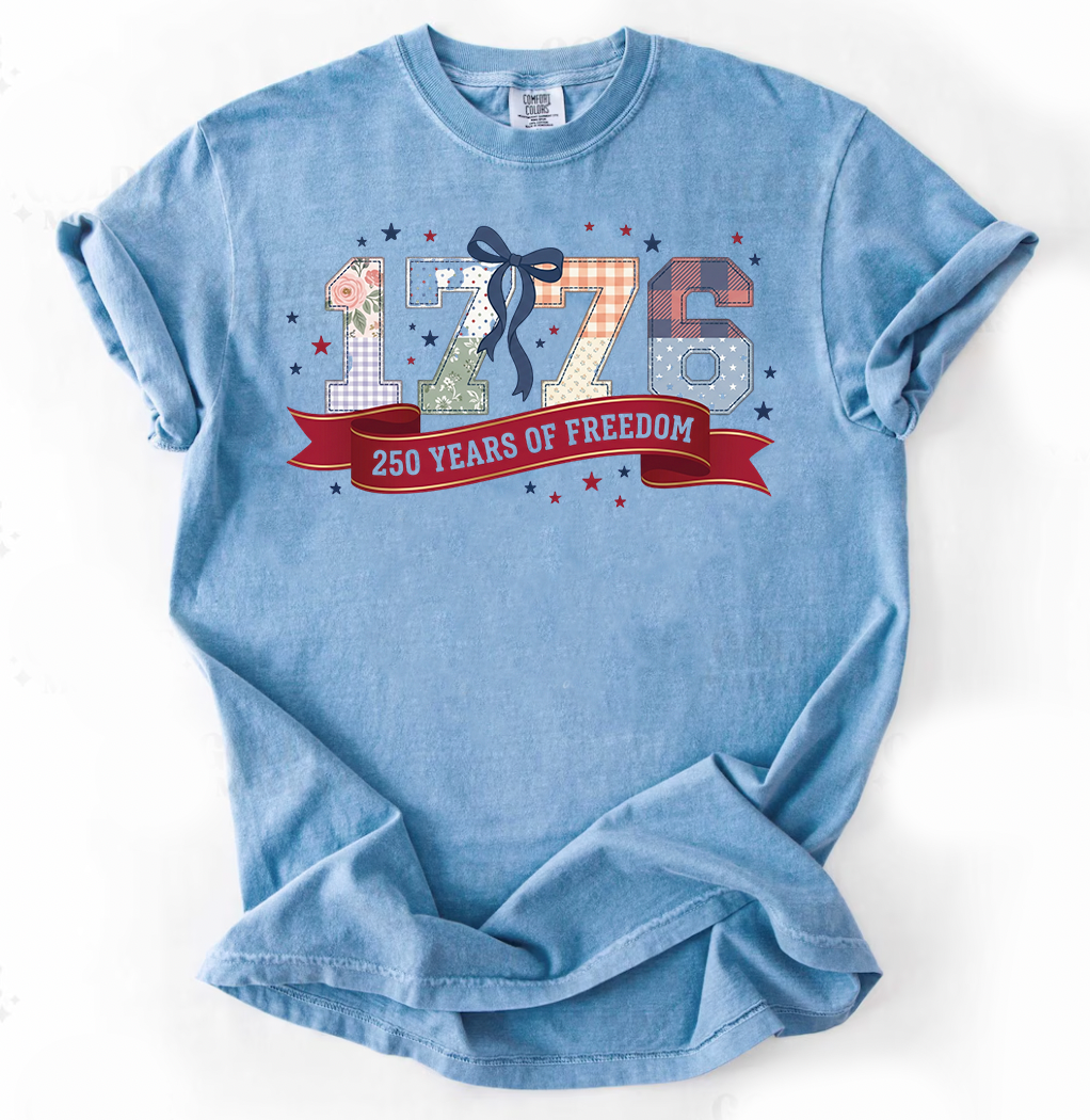 PREORDER: 1776 Mix Print Graphic Tee, Washed Denim