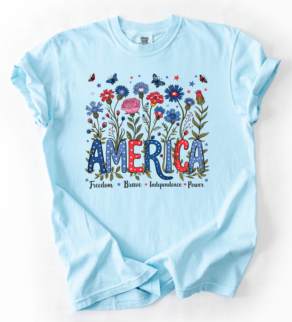 PREORDER: America in Bloom Graphic Tee, Chrambray